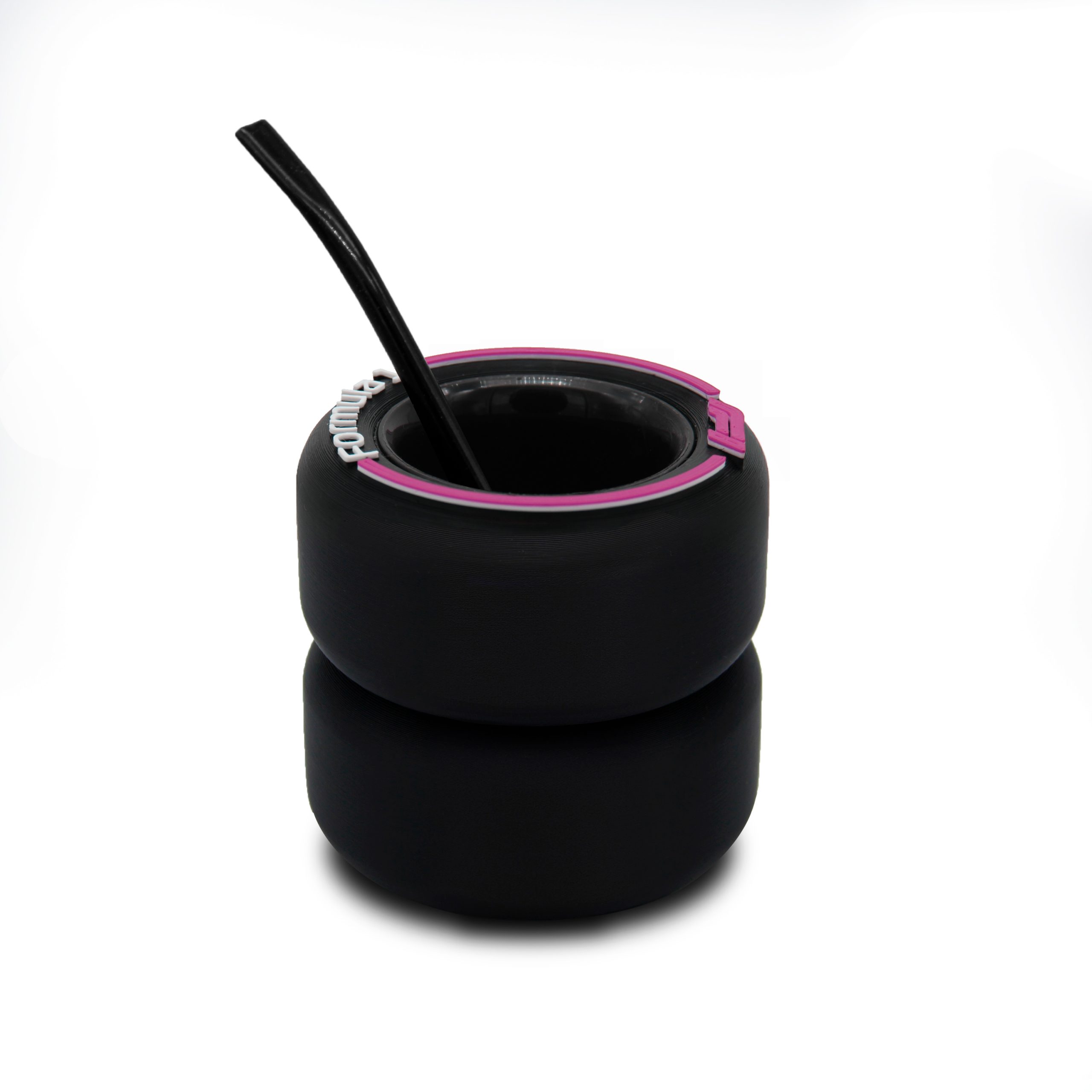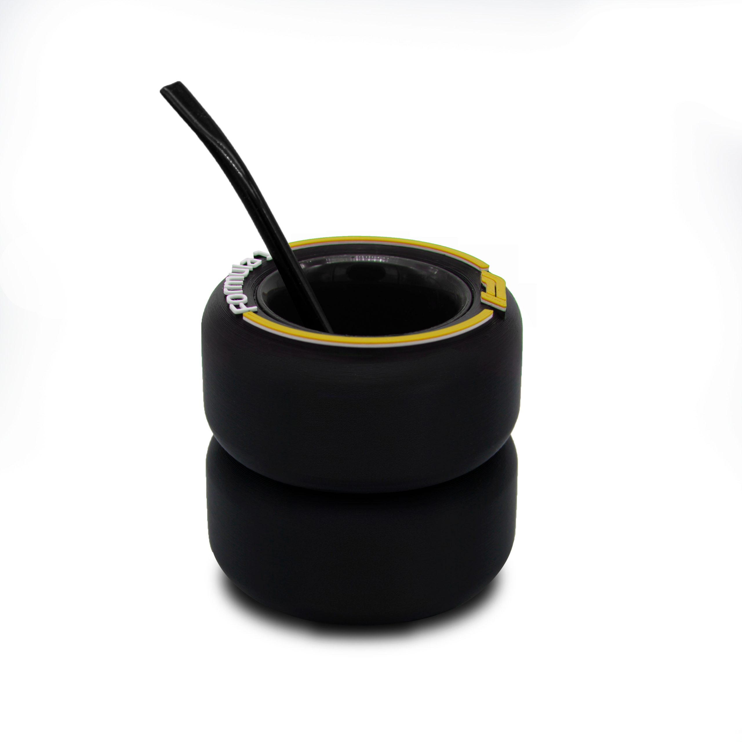 MATE RUEDA F1 2 ruedas | MEDIDAS: 10 cm de alto x 9 cm de diámetro| EXTERIOR: hecho con plástico rígido | INTERIOR: lleva en el centro un accesorio que es removible apto para su uso alimentario